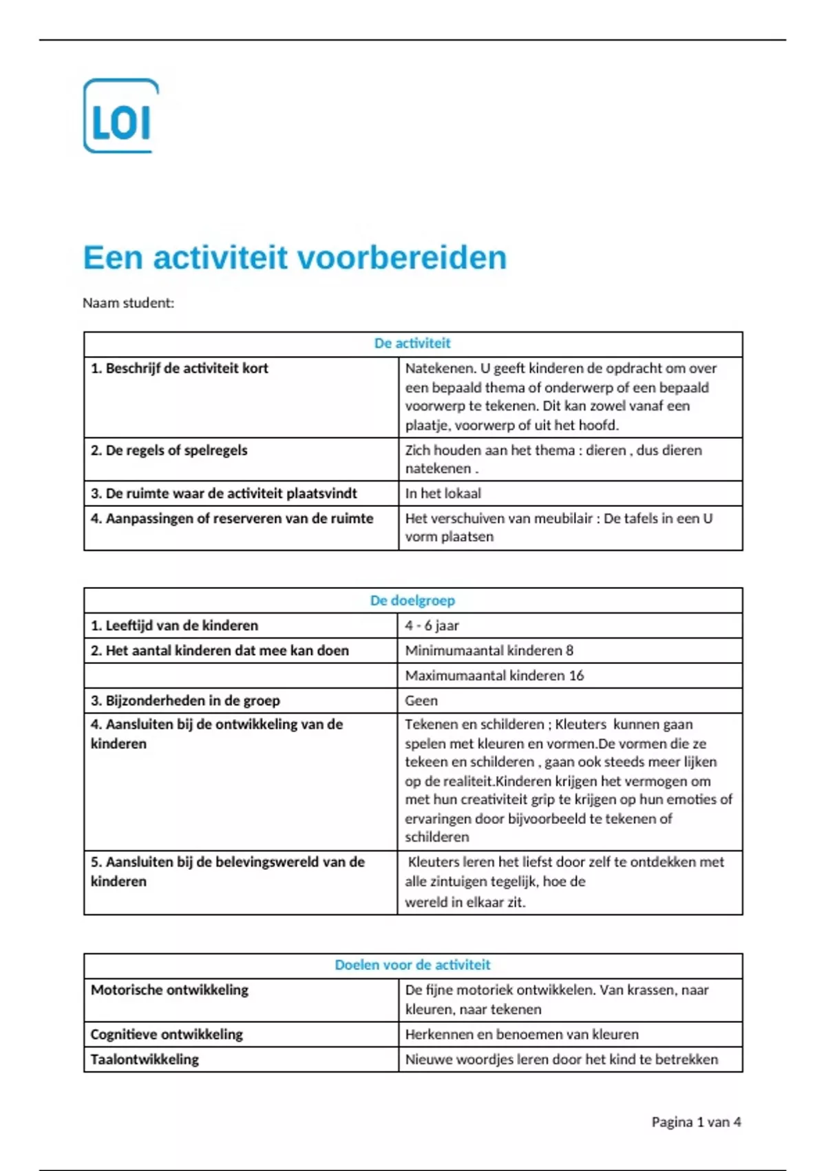 1. Beschrijf de activiteit kort Natekenen. U geeft kinderen de opdracht om over