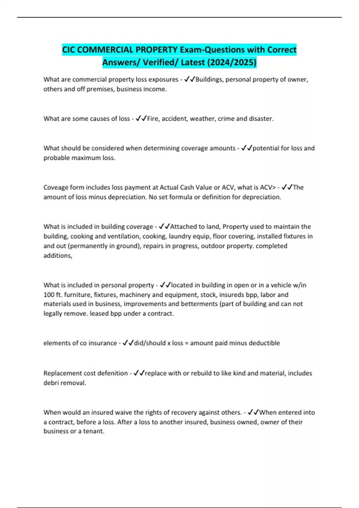 CIC COMMERCIAL PROPERTY Exam-Questions with Correct Answers/ Verified/ Latest (2024/2025)
