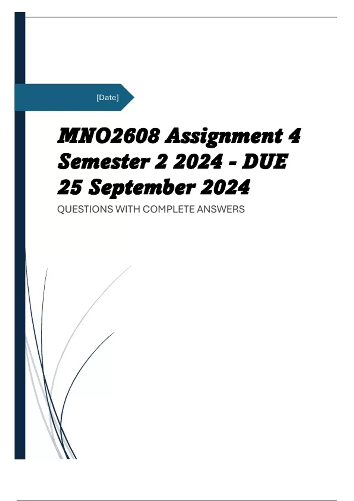 QUESTIONS WITH ANSWERS MNO2608 Assignment 4 Semester 2 2024 - DUE 25 September 2024