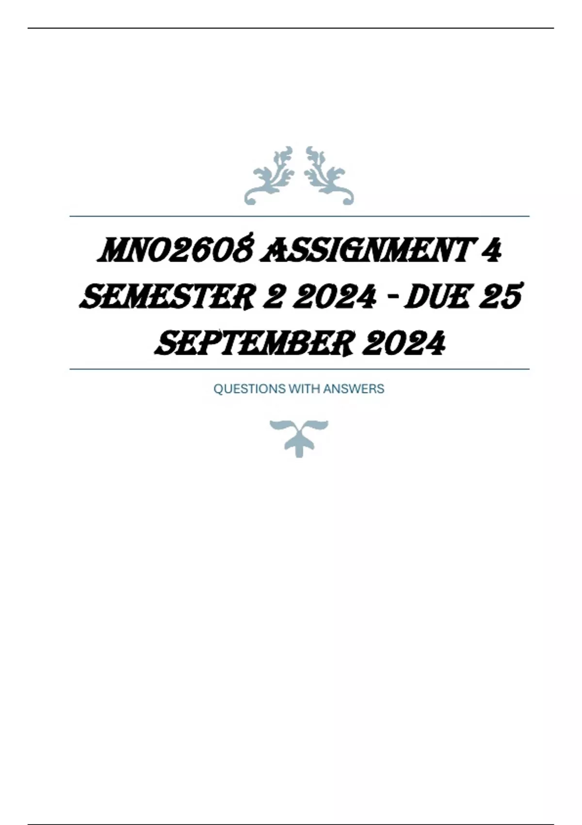 ,MNO2608 Assignment 4 Semester 2 2024 - DUE 25 September 2024