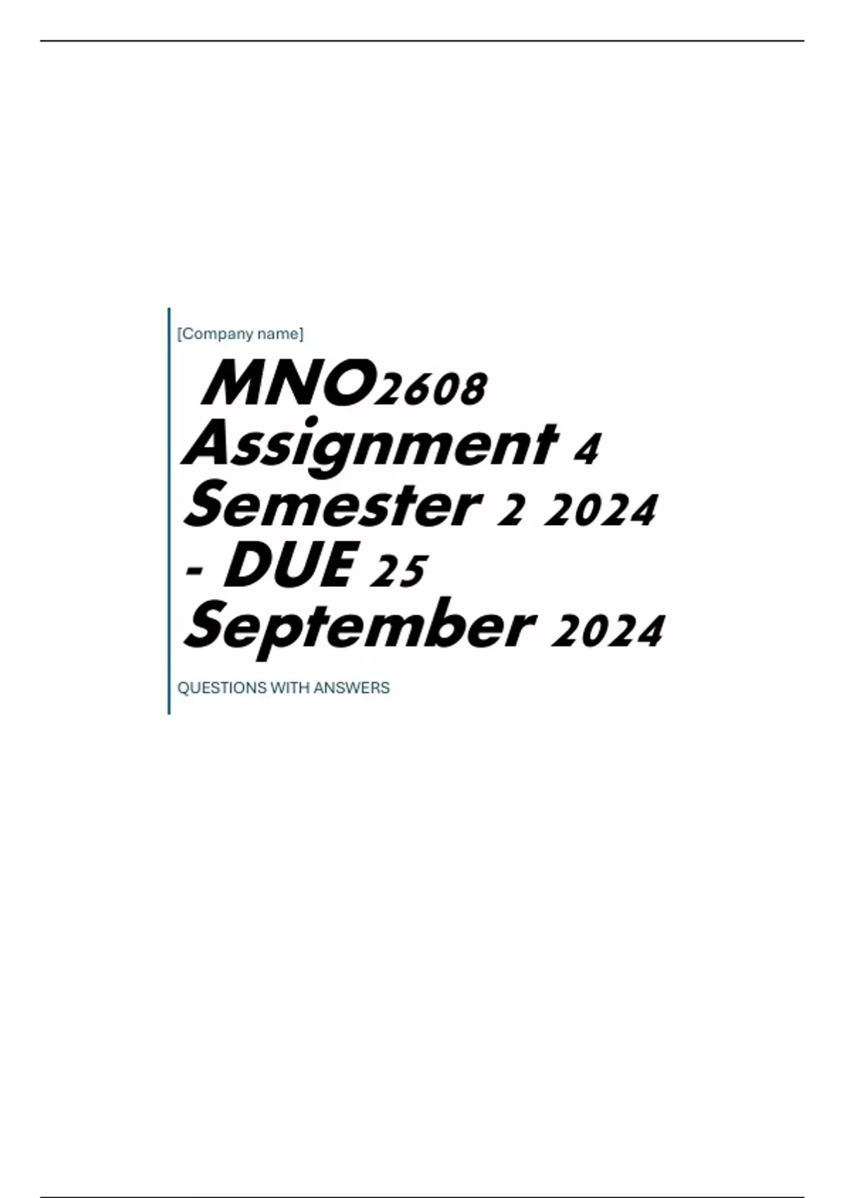MNO2608 Assignment 4 Semester 2 2024 - DUE 25 September 2024 COMPLETE ANSWERS