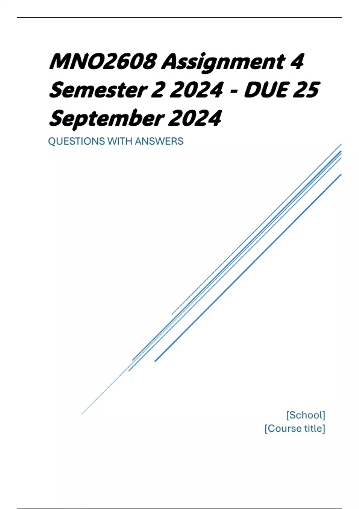 ,MNO2608 Assignment 4 Semester 2 2024 - DUE 25 September 2024