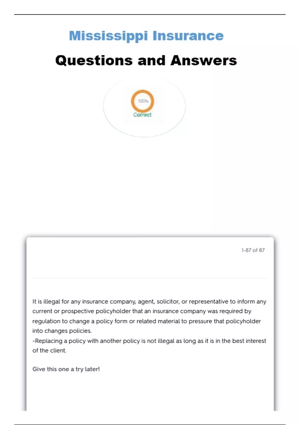 (MS Laws & Regulation - Life Insurance ONLY)