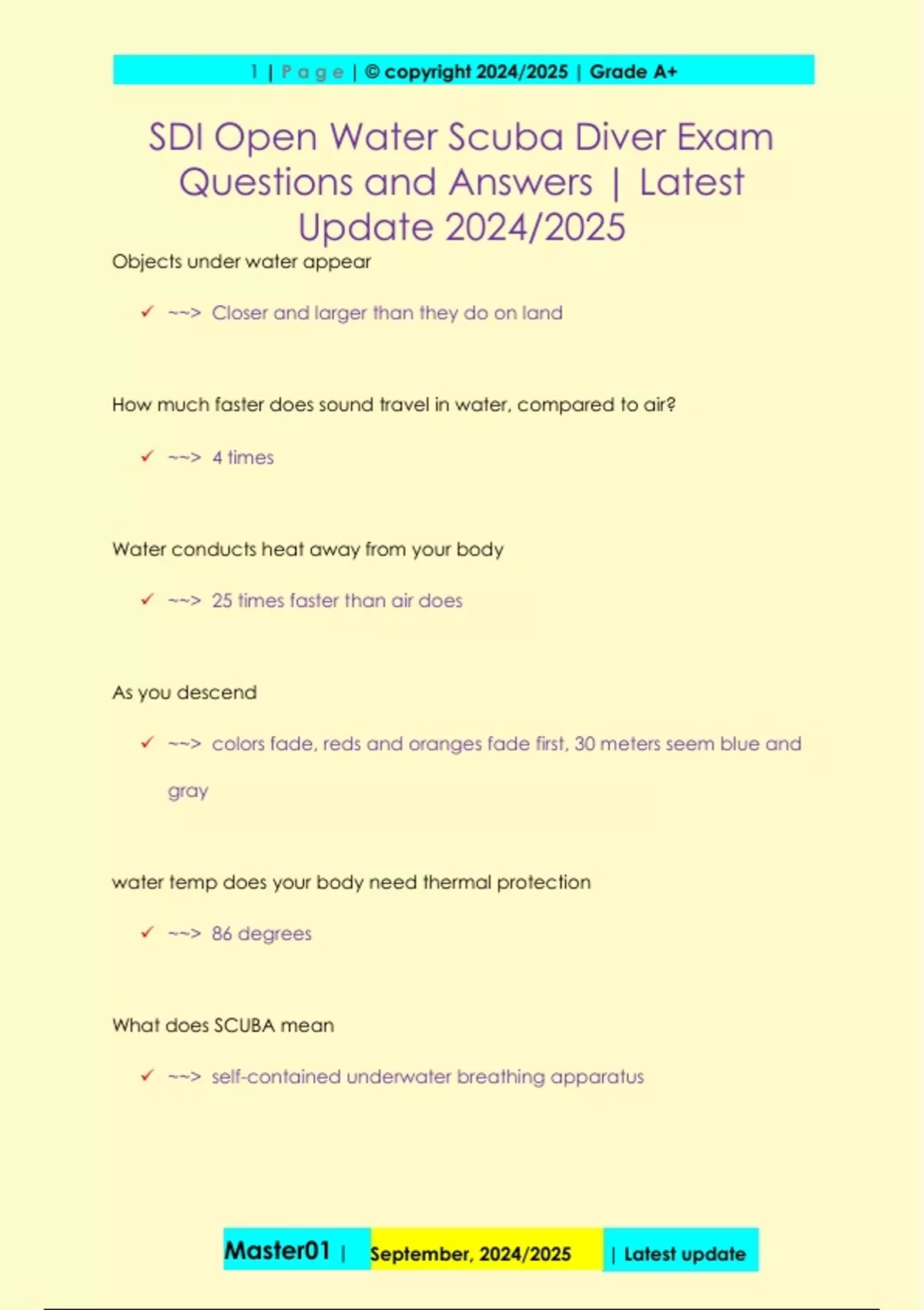 SDI Open Water Scuba Diver Exam