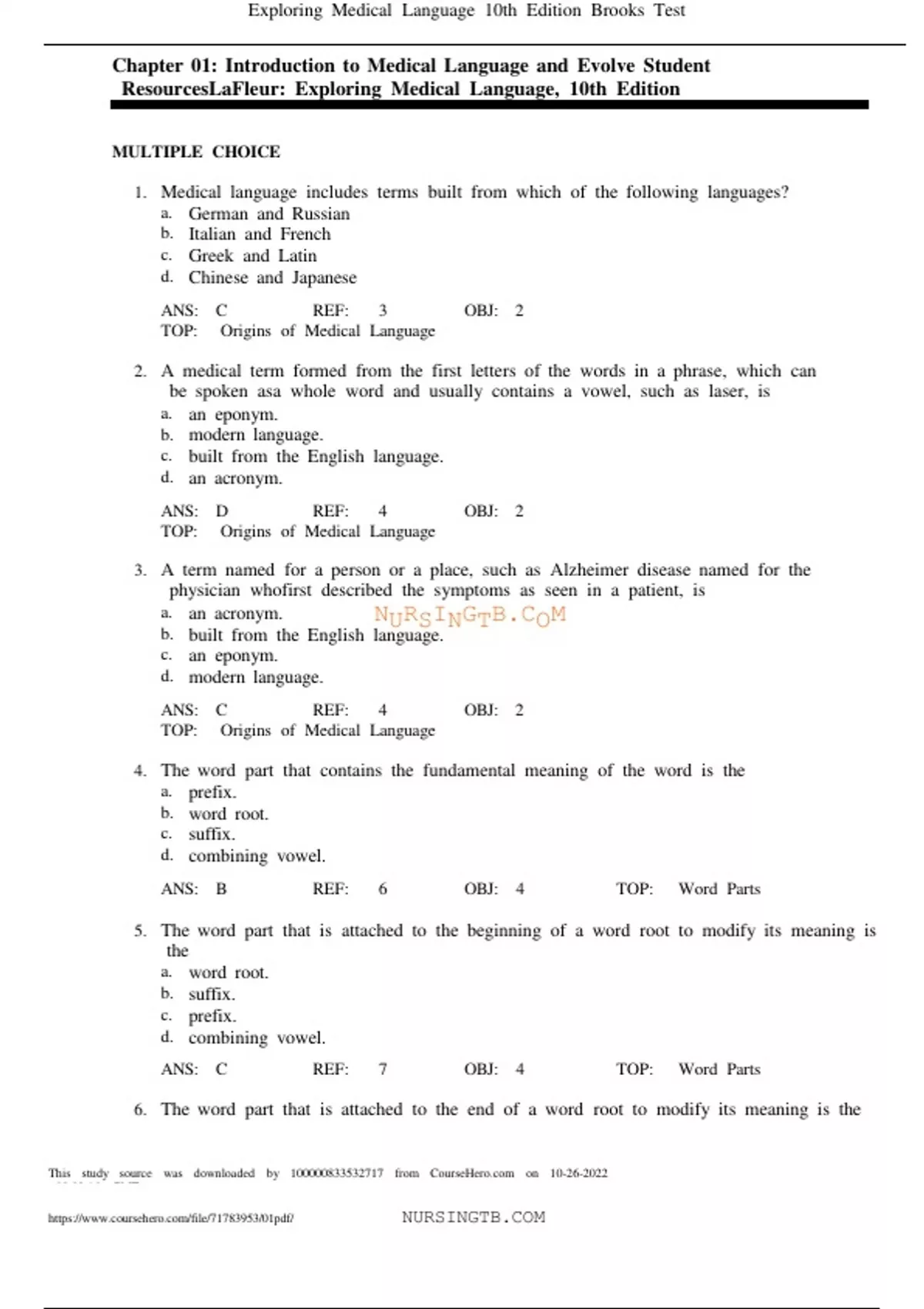 , Exploring gMedical gLanguage g10th gEdition gBrooks gTest
