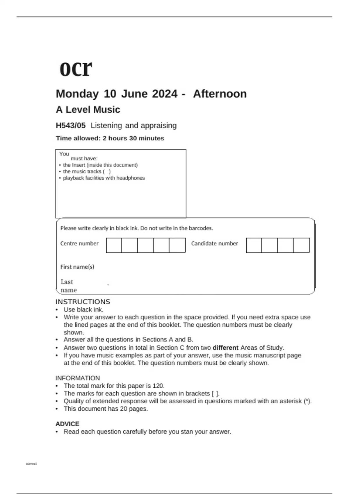  Tracks 1– 5 are the music extracts for Section A and Section B. You can listen to them as many