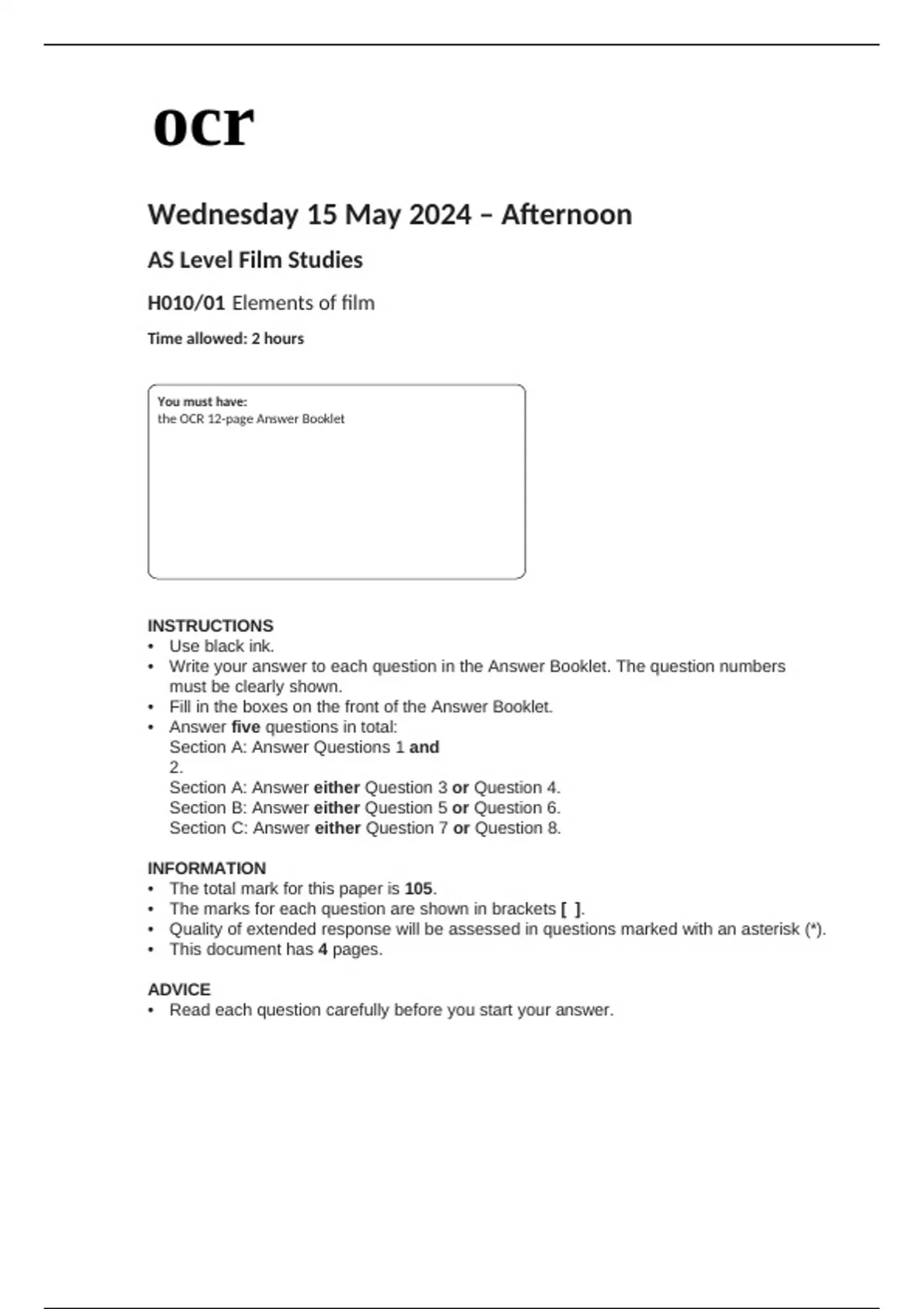 ocr AS Level Film Studies (H010-01) Question Paper May2024.