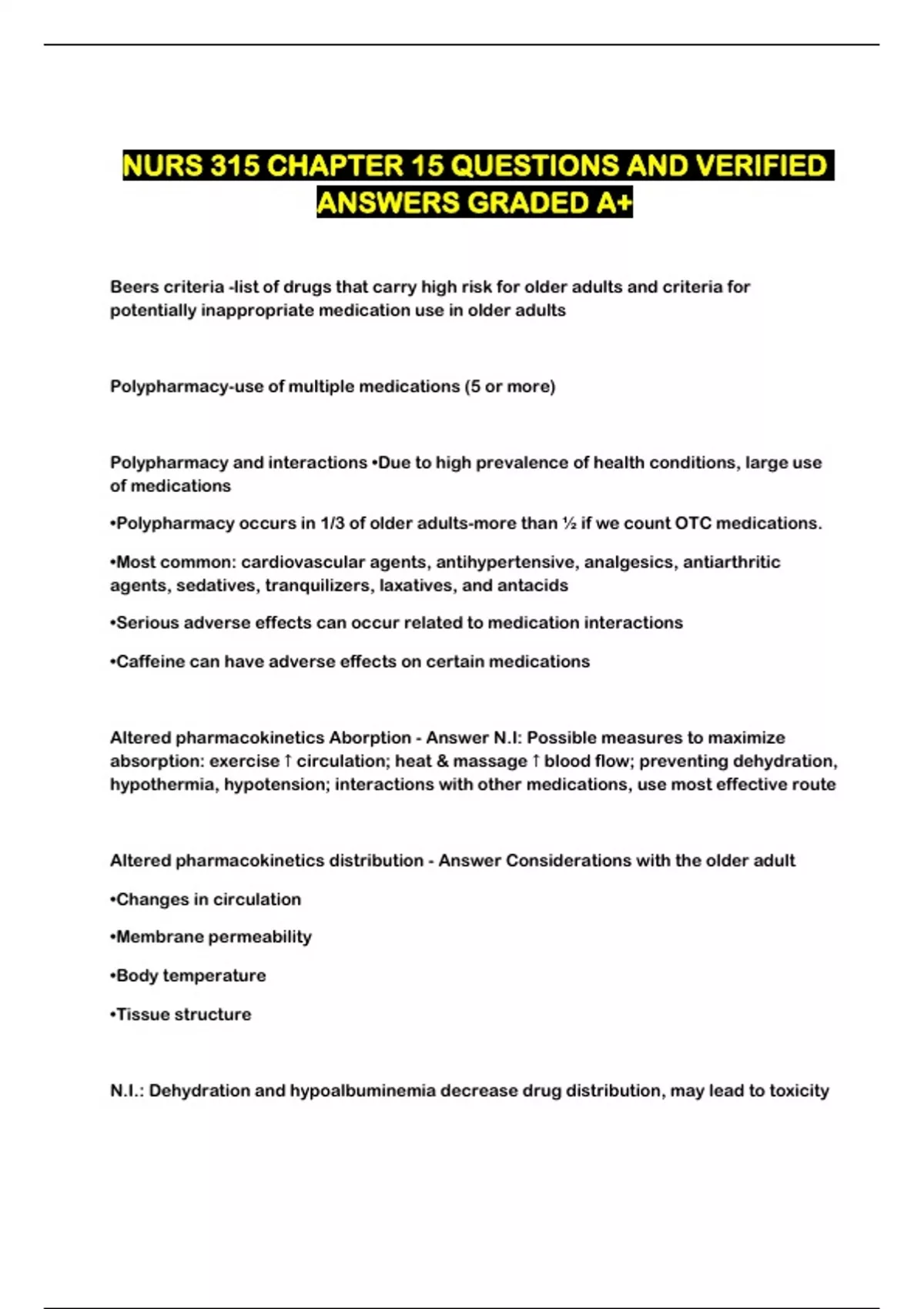 NURS 315 CHAPTER 15 QUESTIONS AND VERIFIED
