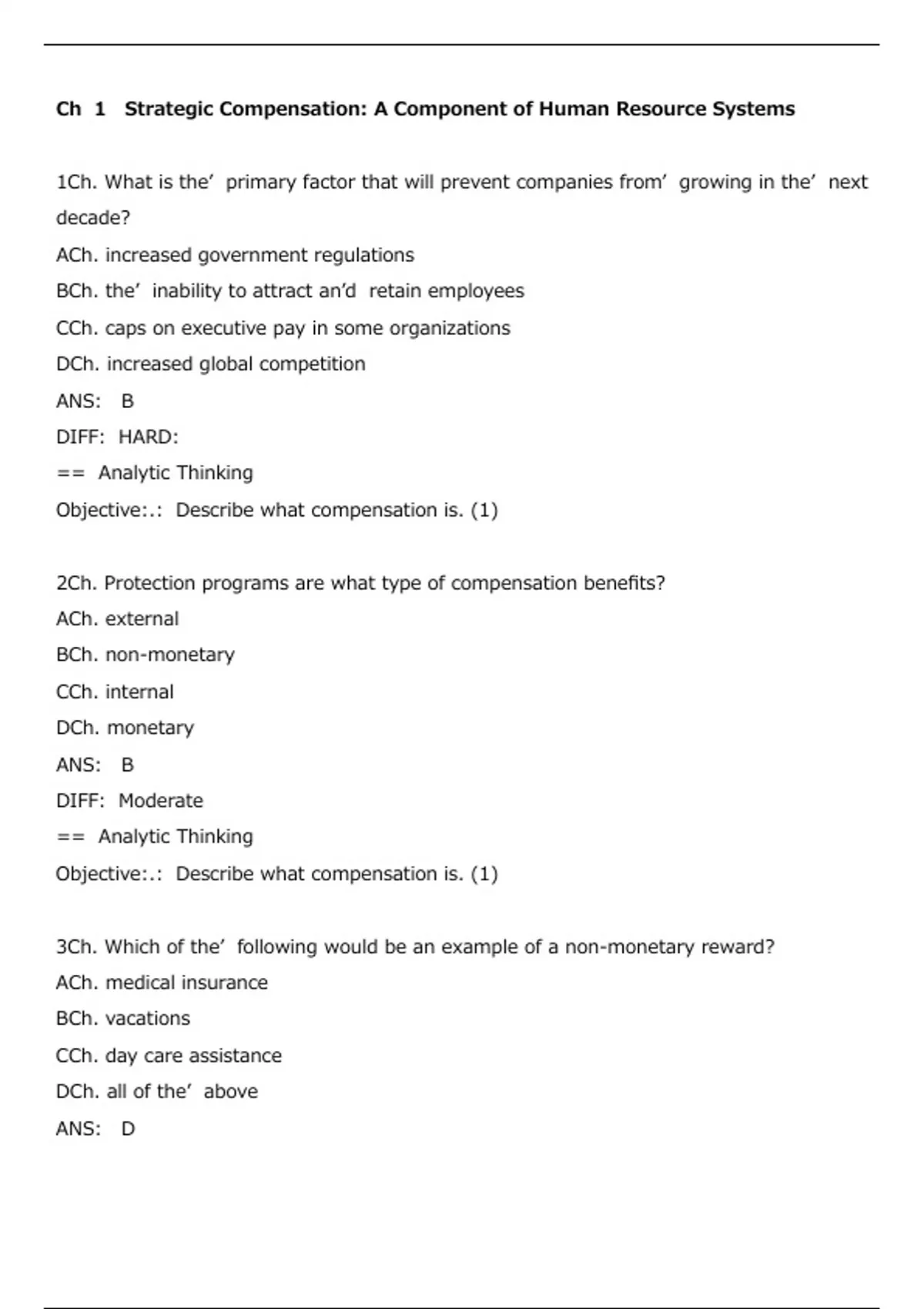 3Ch. Which of the’ following would be an example of a non-monetary reward?