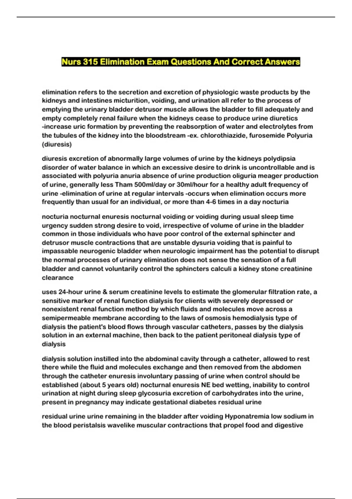 Nurs 315 Elimination Exam Questions And Correct Answers...