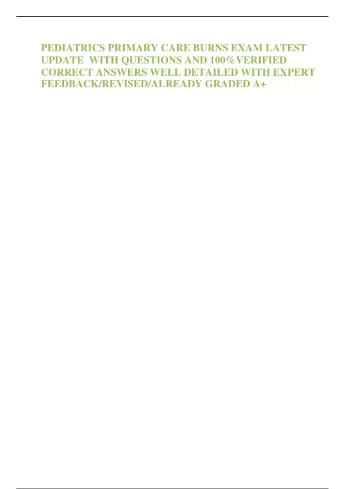 PEDIATRICS PRIMARY CARE BURNS EXAM LATEST