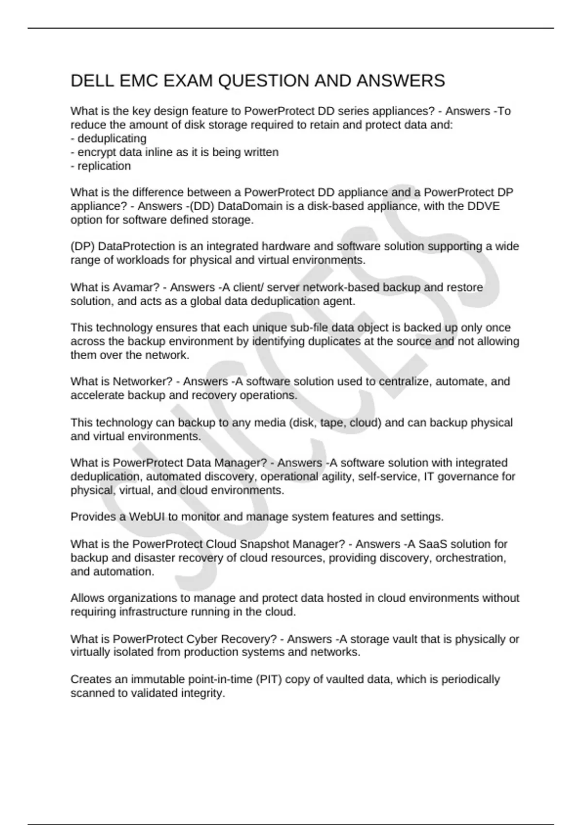 DELL EMC EXAM QUESTION AND ANSWERS
