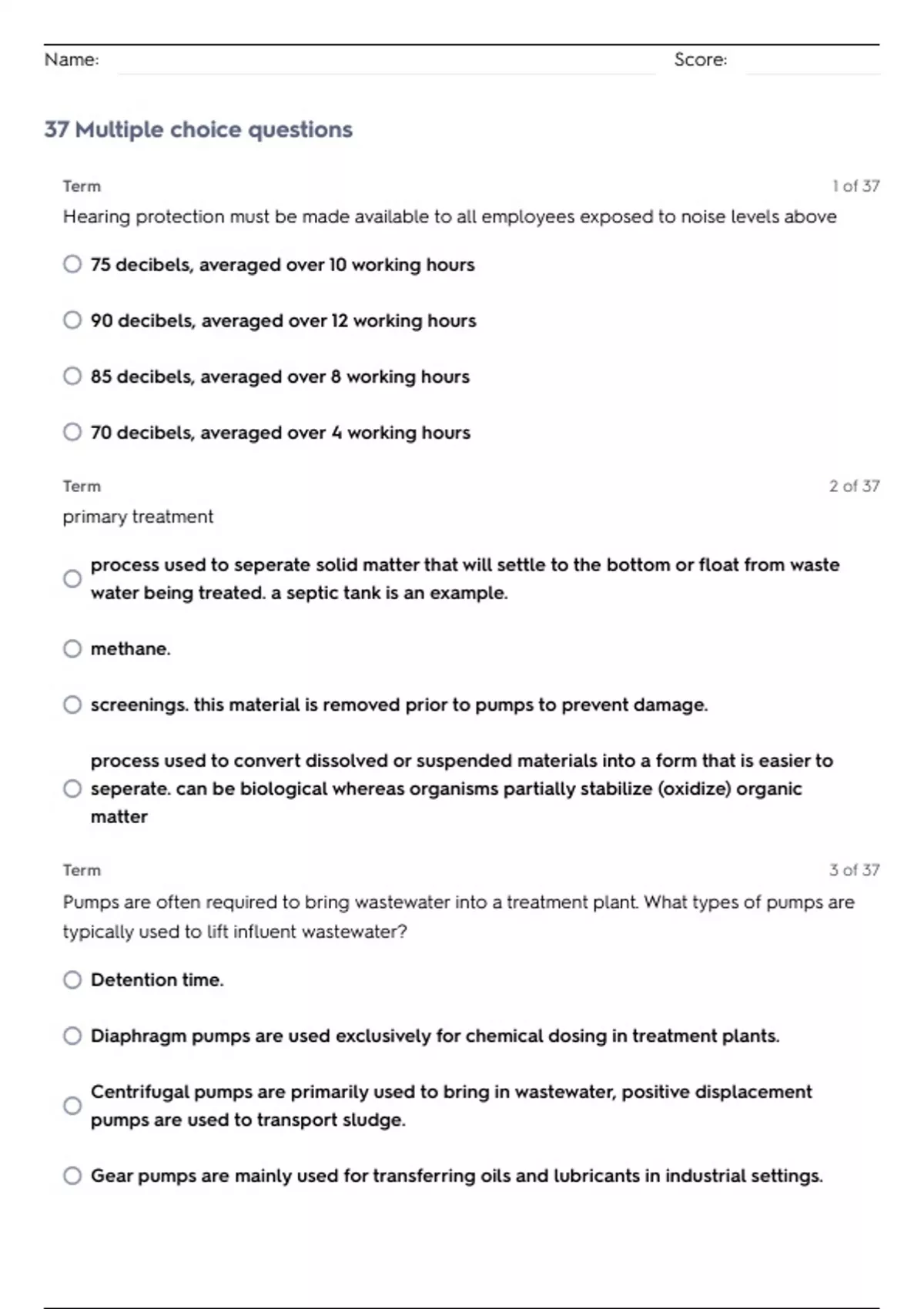 process used to seperate solid matter that will settle to the bottom or float from waste