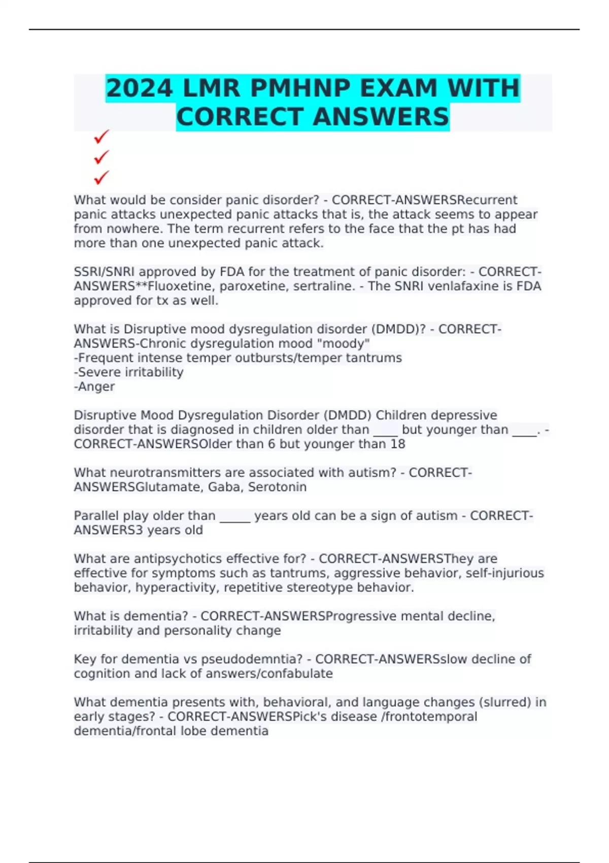 2024 LMR PMHNP EXAM WITH CORRECT ANSWERS