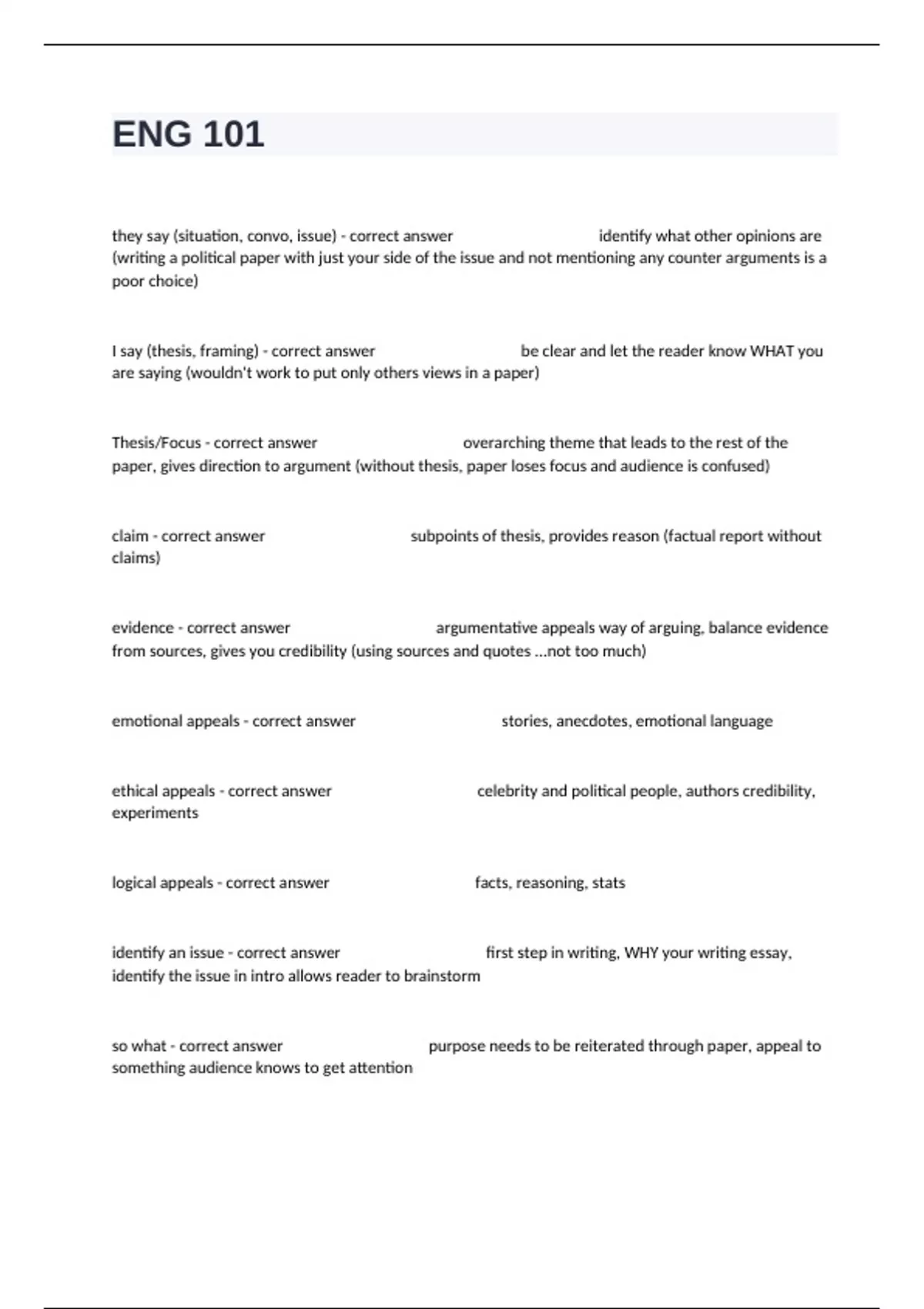 Thesis/Focus - correct answer overarching theme that leads to the rest of the