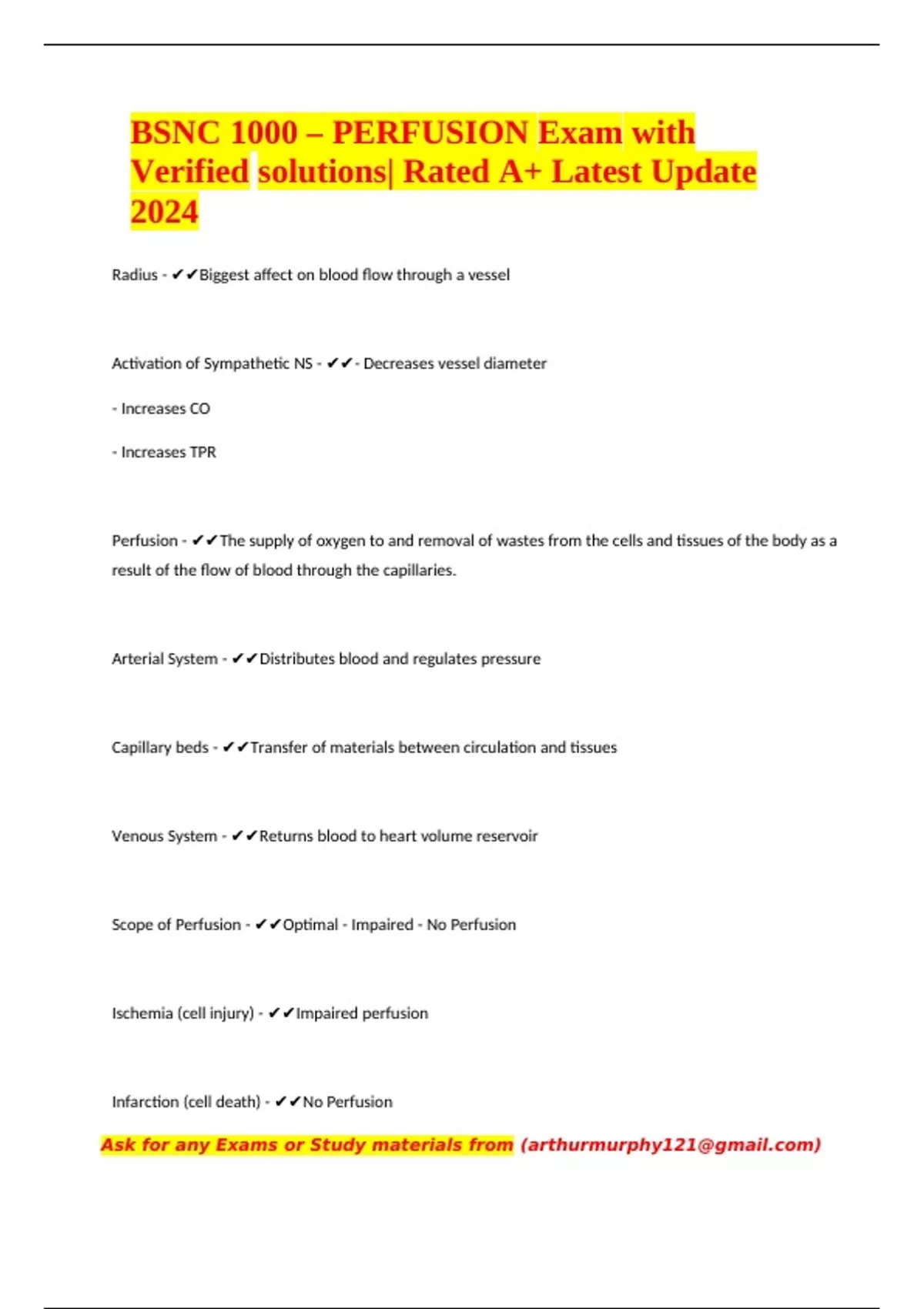 Perfusion - ✔✔The supply of oxygen to and removal of wastes from the cells and tissues of the body as a