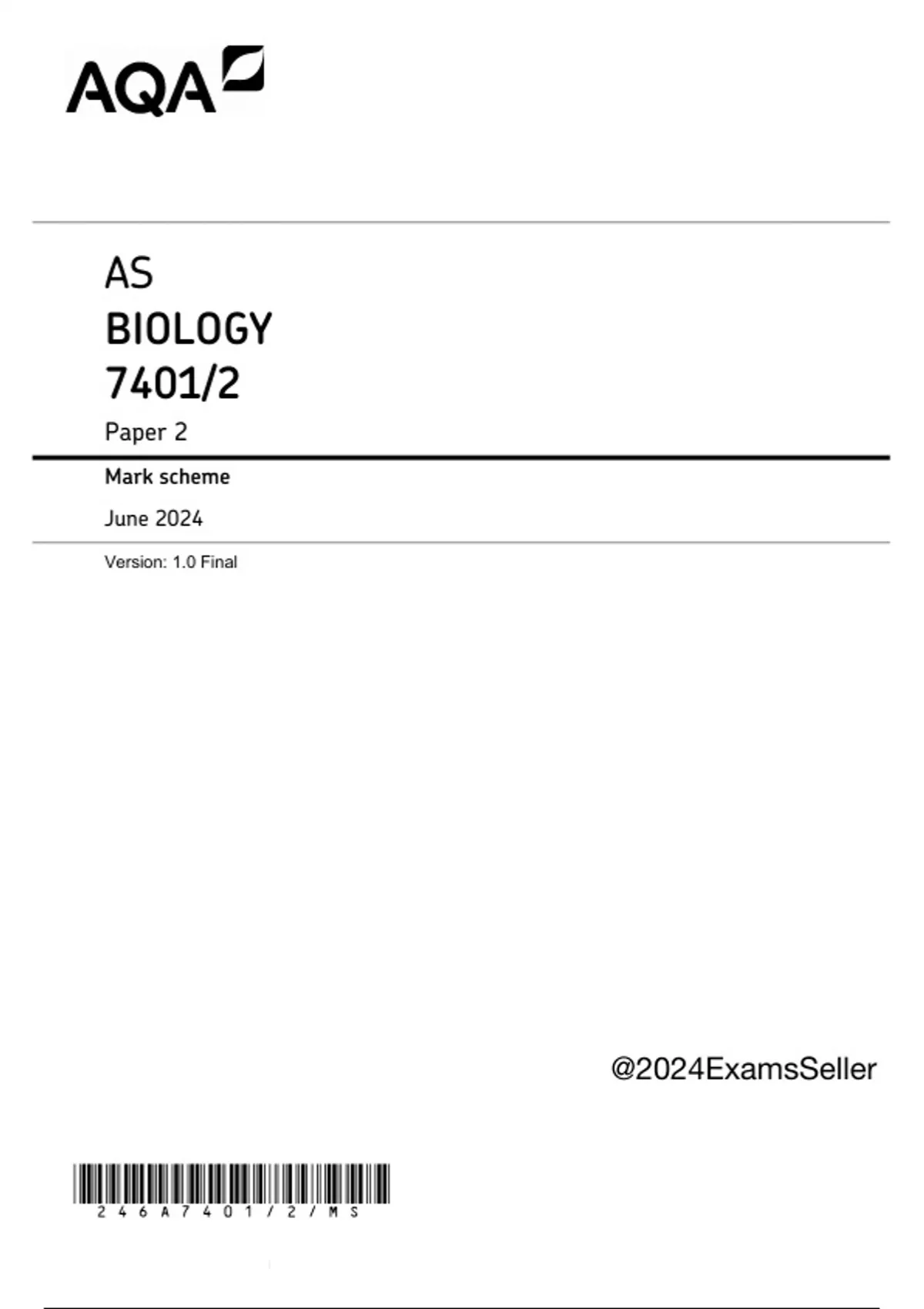 MARK SCHEME – AS BIOLOGY – 7401/2 – JUNE 2024
