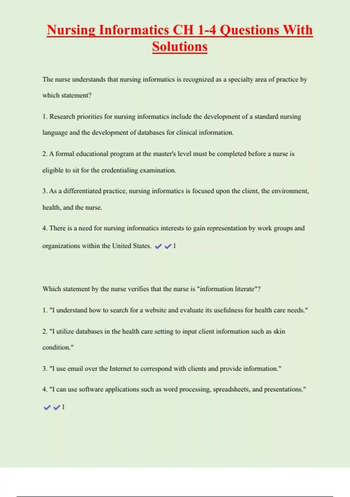 , Nursing Informatics CH 1-4 Questions With