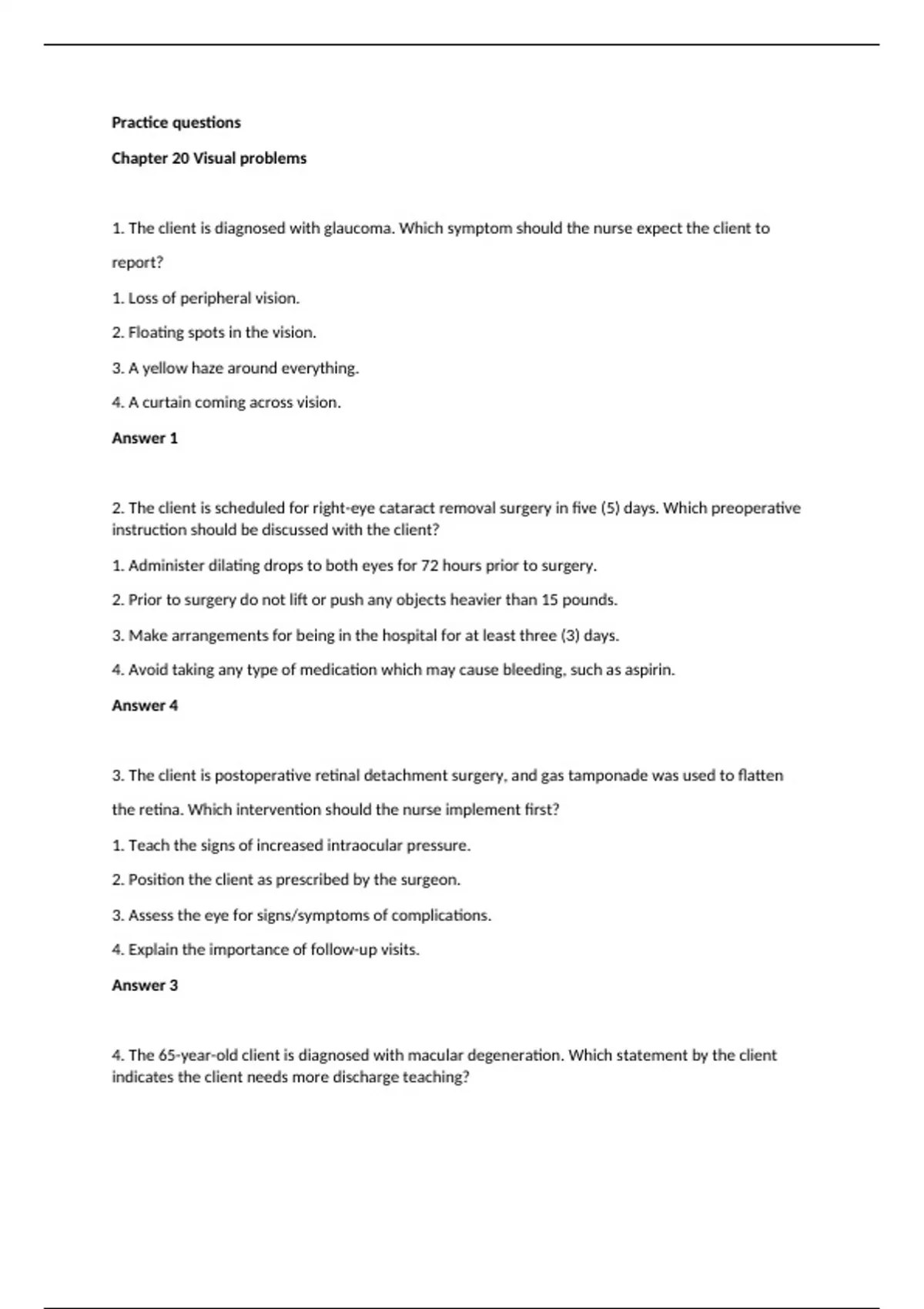 7. The 65-year-old male client who is complaining of blurred vision reports he thinks his glasses