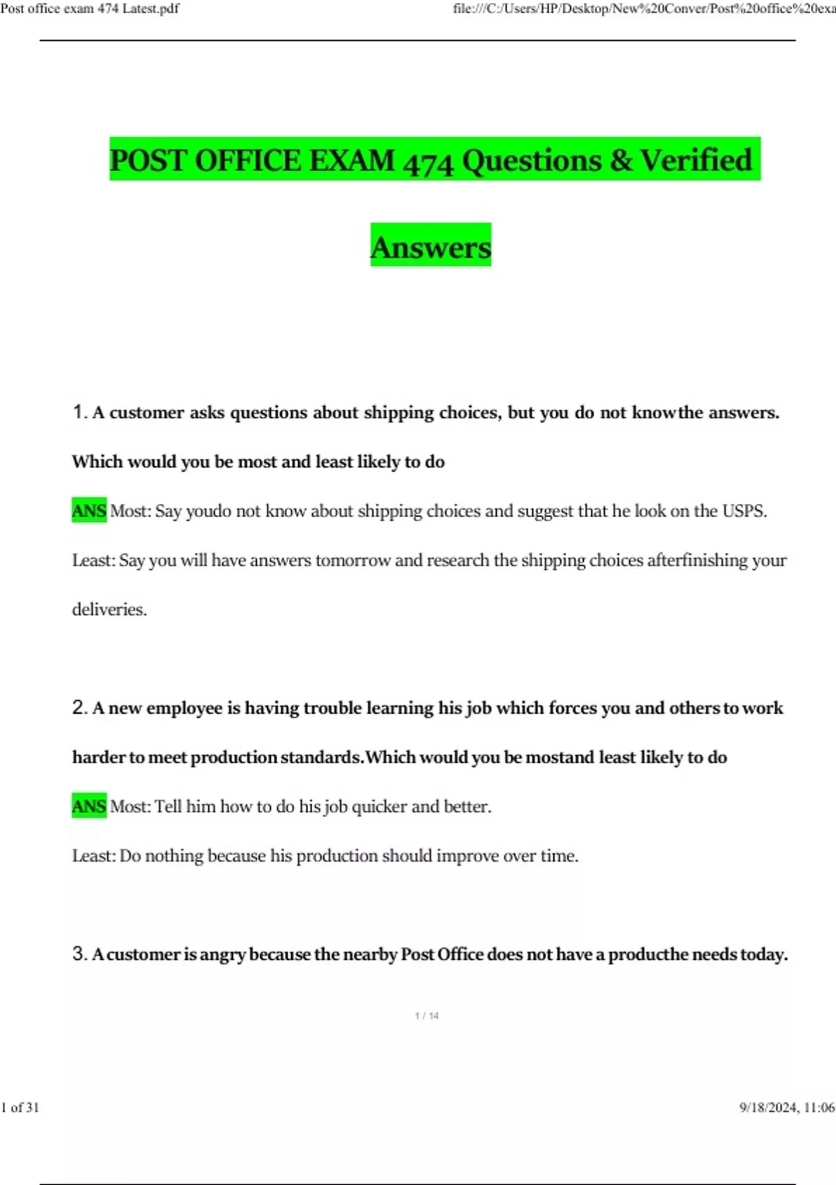 Post Office Exam 474 | Latest 2025 Completed Solutions