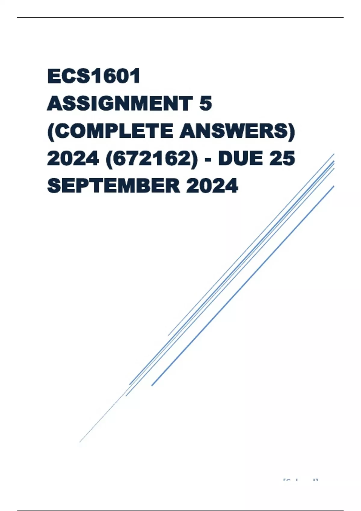 ECS1601 Assignment 5 (COMPLETE ANSWERS) 2024 (672162) - DUE 25 September 2024