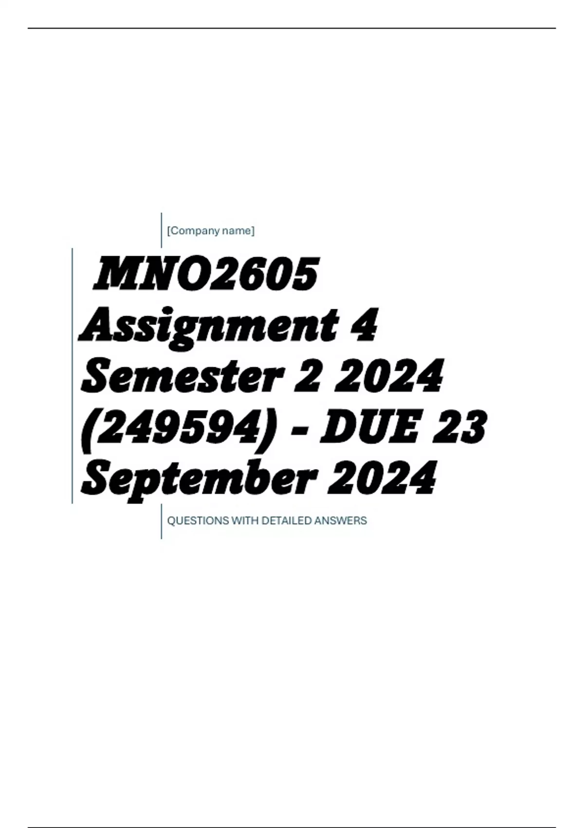 , MNO2605 Assignment 4 Semester 2 2024 (249594) - DUE 23 September 2024