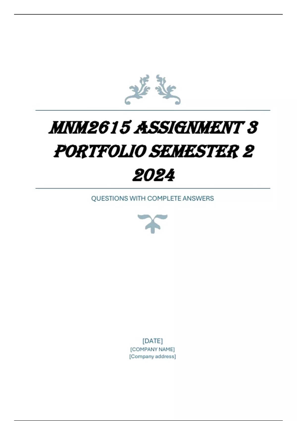 , MNM2615 Assignment 3 PORTFOLIO Semester 2 2024