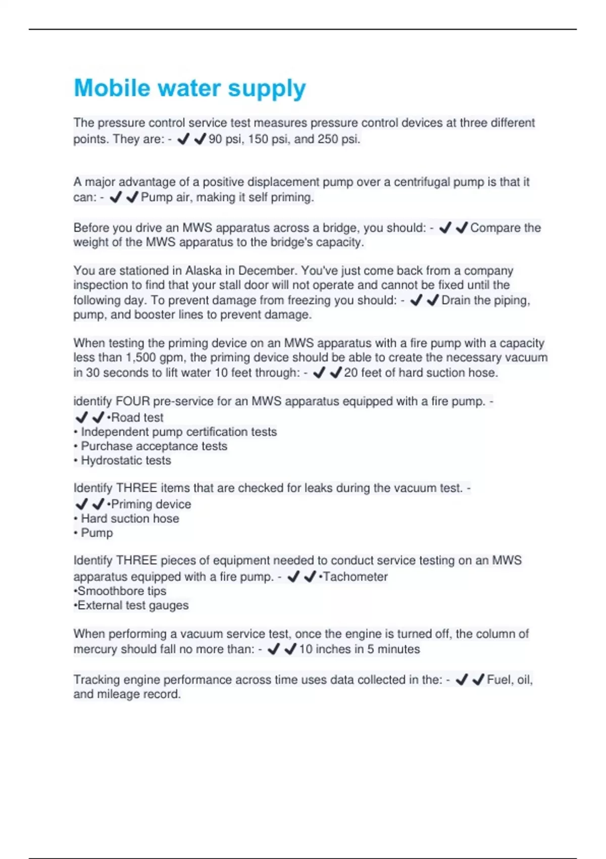 NFPA 1911 requires an MWS apparatus equipped with a fire pump to be service tested: