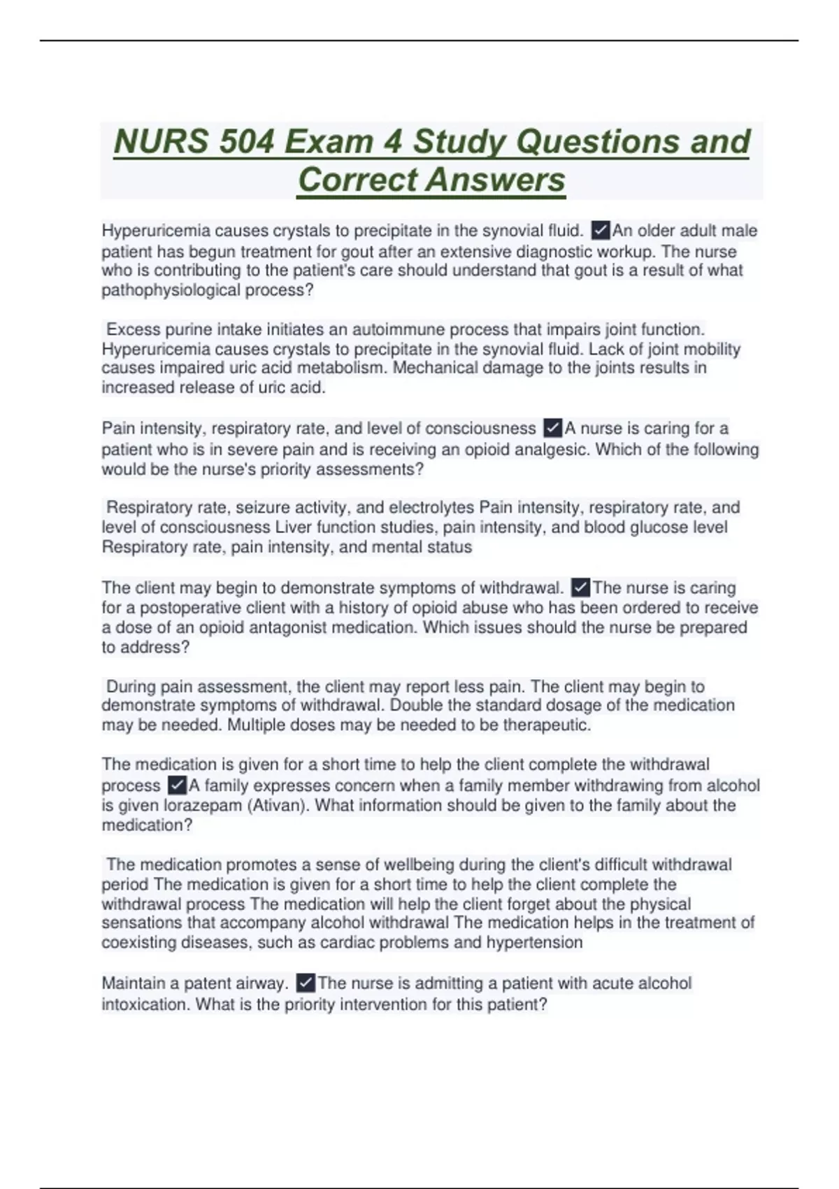 NURS 504 Exam 4 Study Questions and Correct Answers