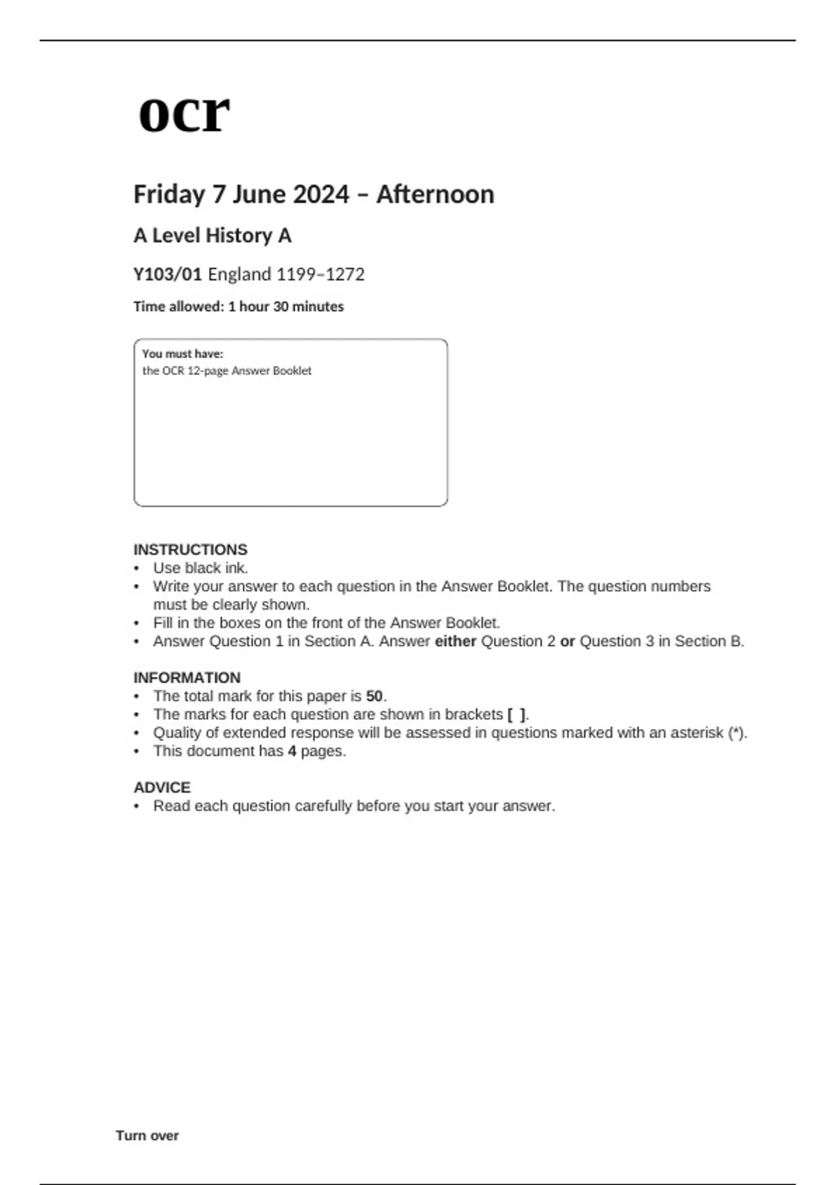 ocr A Level History A (Y103-01) Question Paper June2024.
