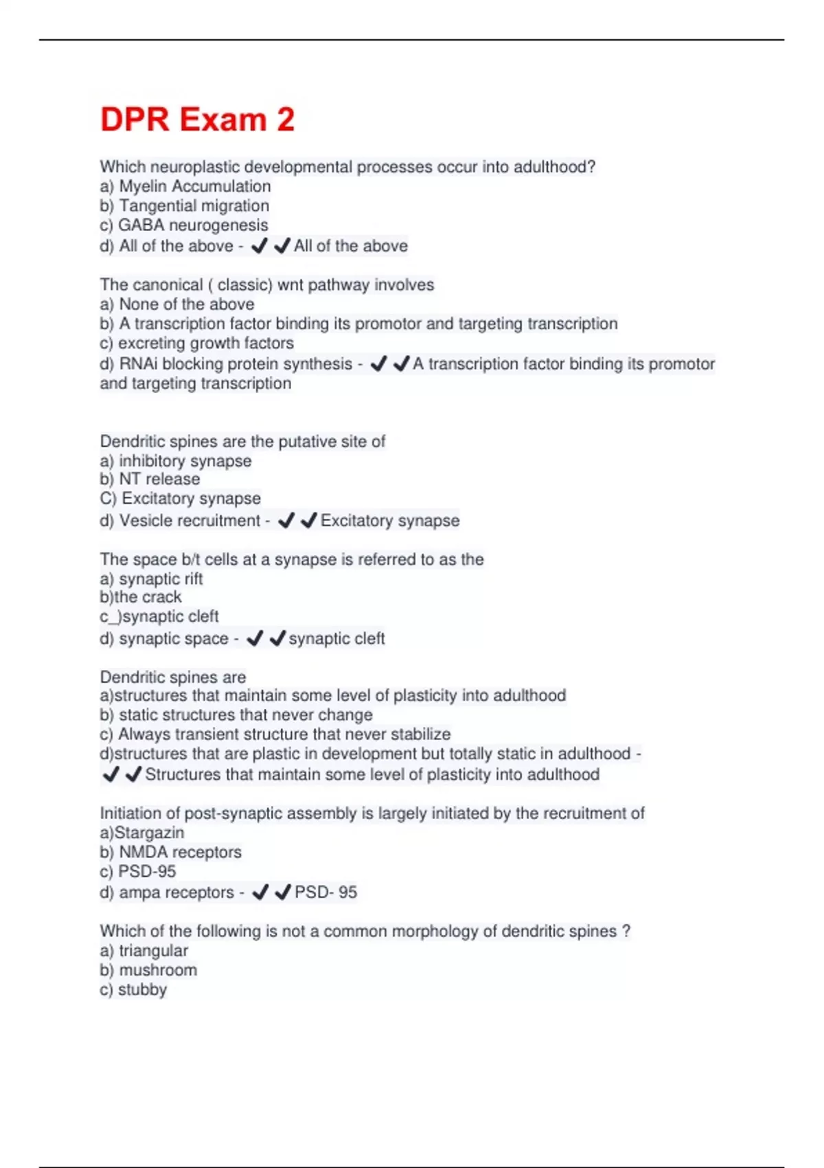 d) ampa receptors - ✔️✔️PSD- 95