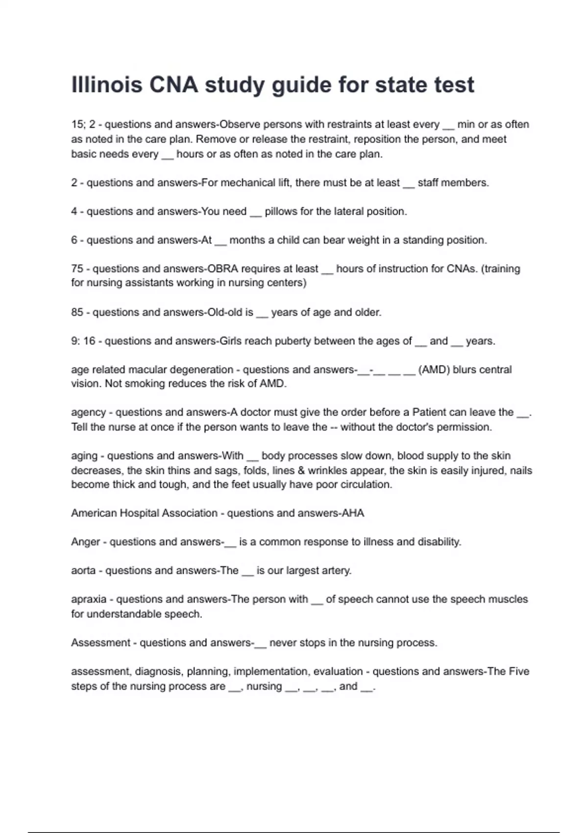 Illinois CNA study guide for state test