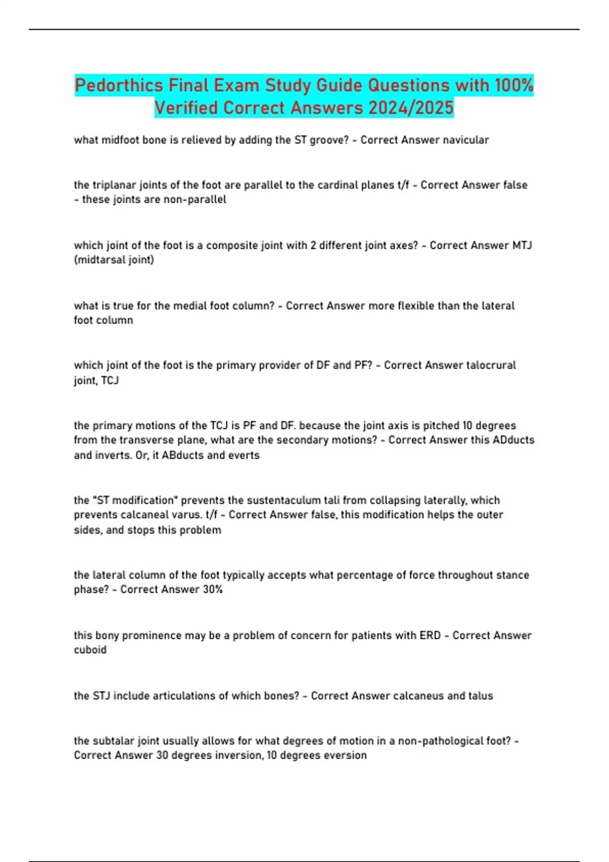 Verified Correct Answers 2024/2025