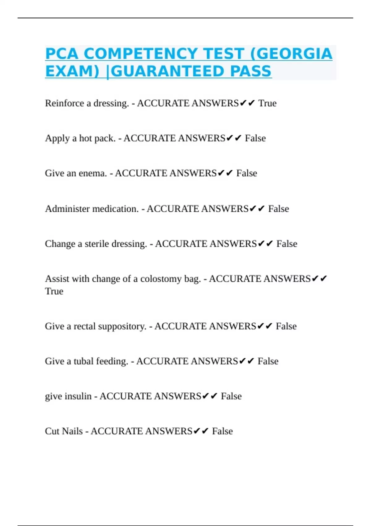 Give a rectal suppository. - ACCURATE ANSWERS✔✔ False