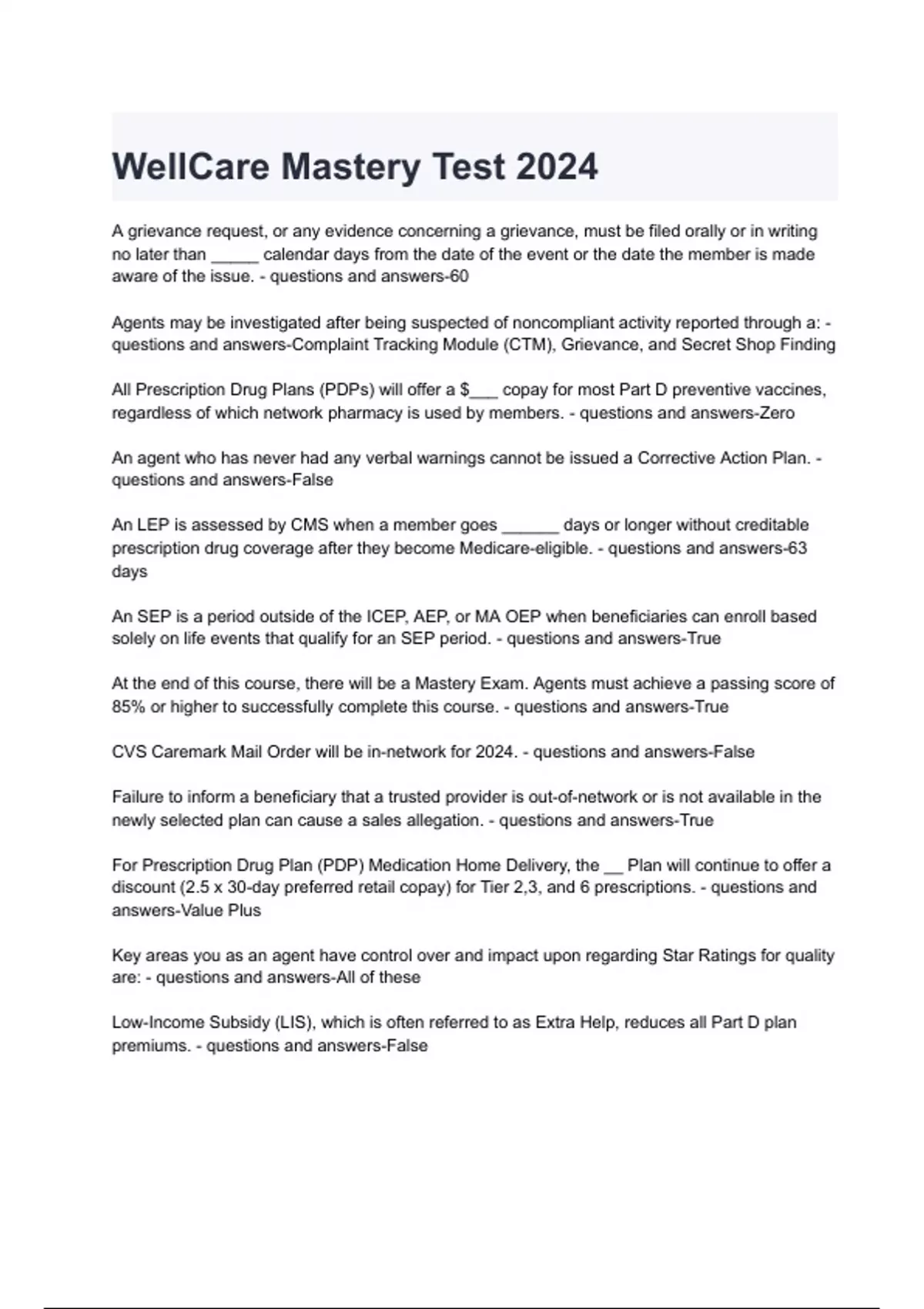 WellCare Mastery Test 2024