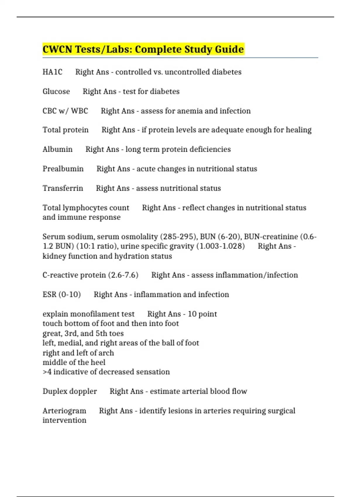 C-reactive protein (2.6-7.6) Right Ans - assess inflammation/infection