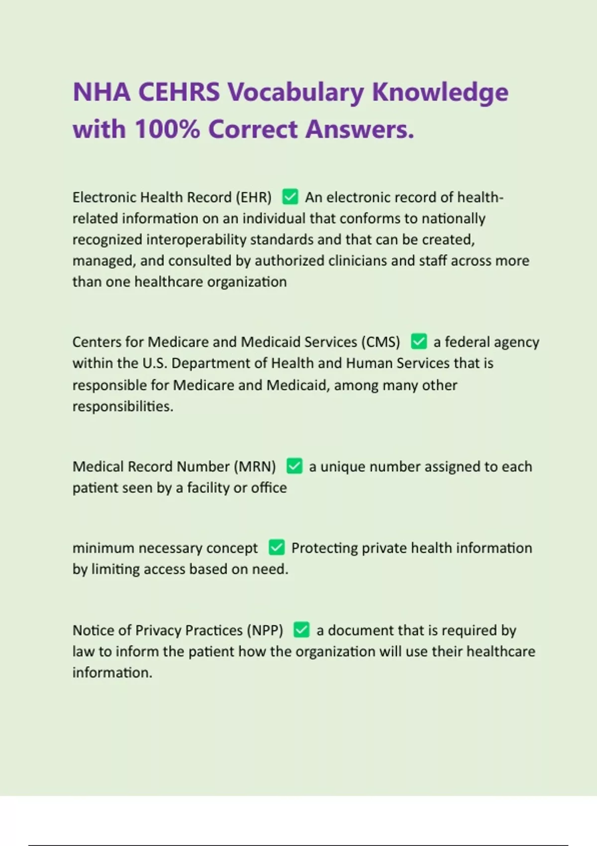 Electronic Health Record (EHR) An electronic record of health-