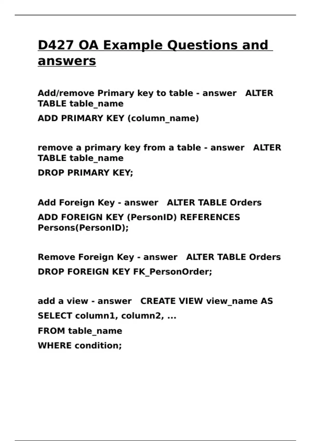 D427 OA Example Questions and