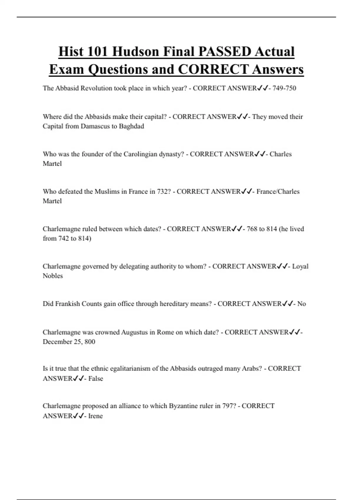 Charlemagne ruled between which dates? - CORRECT ANSWER✔✔- 768 to 814 (he lived