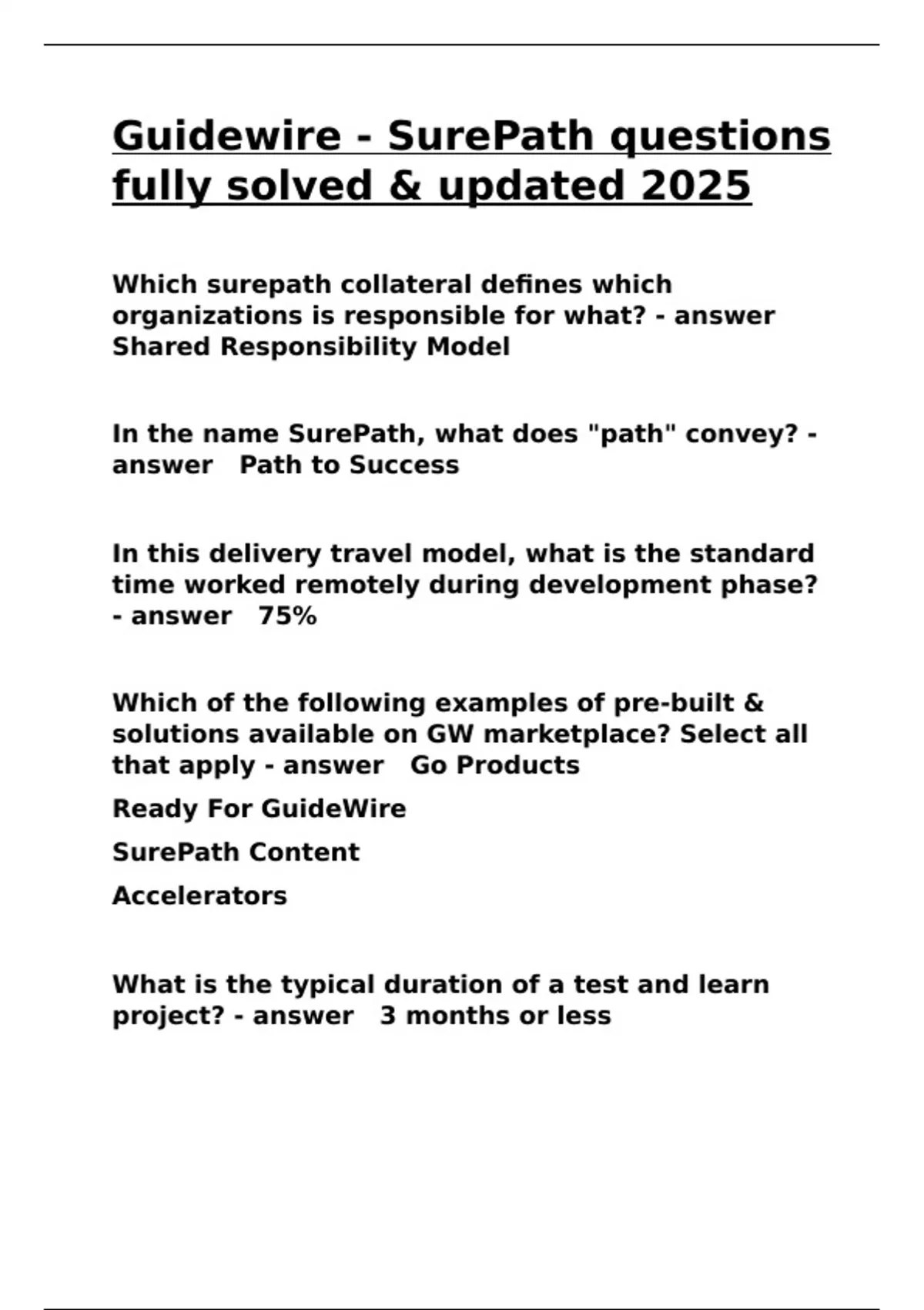 Guidewire - SurePath questions fully solved & updated 2025
