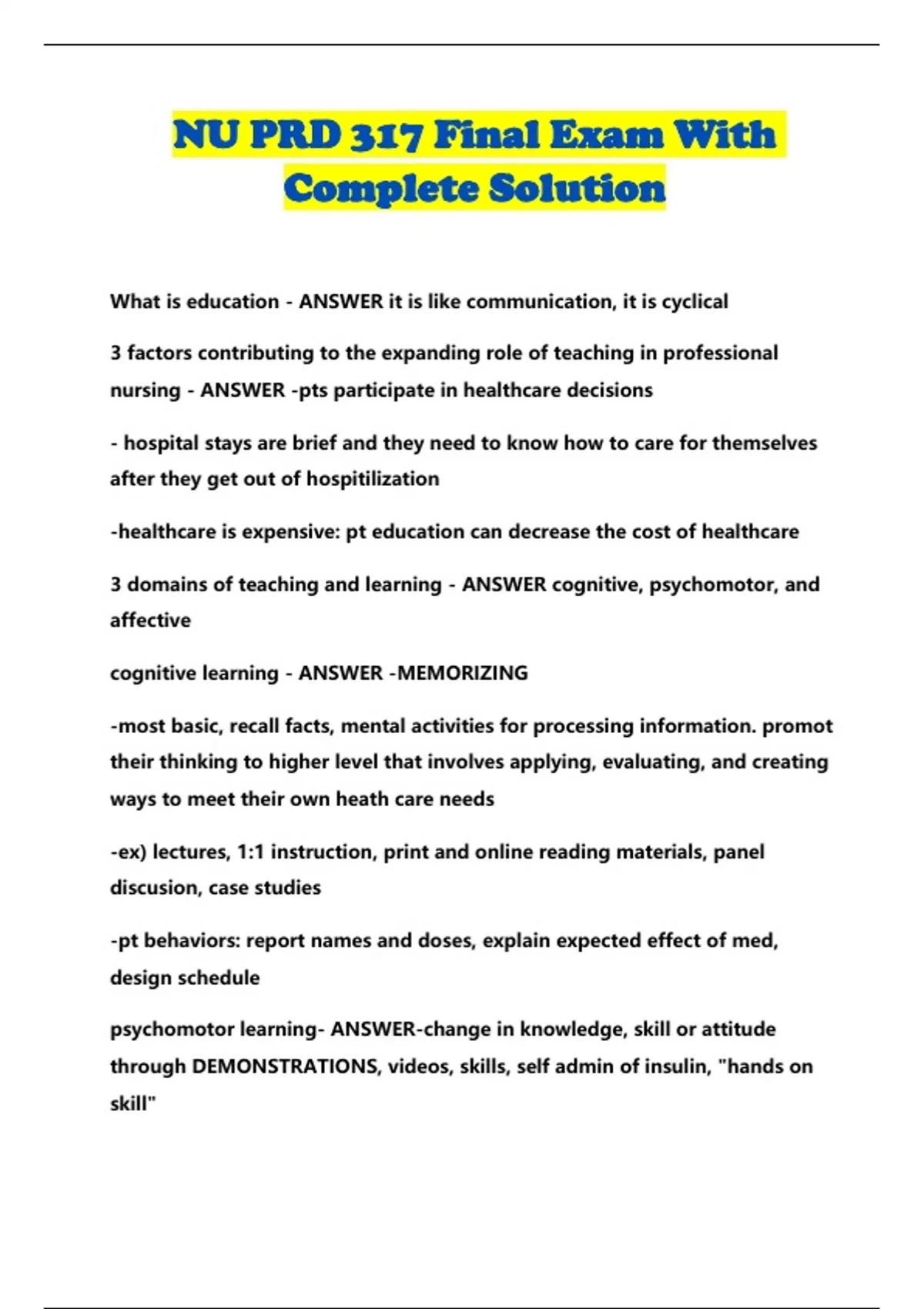 NU PRD 317 Final Exam With