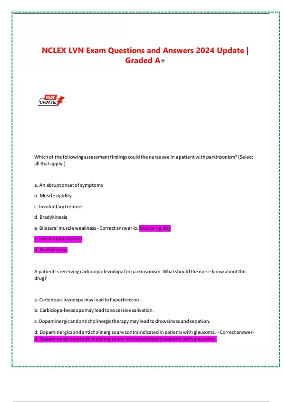 e. Bilateral muscle weakness - Correct answer-b. Muscle rigidity