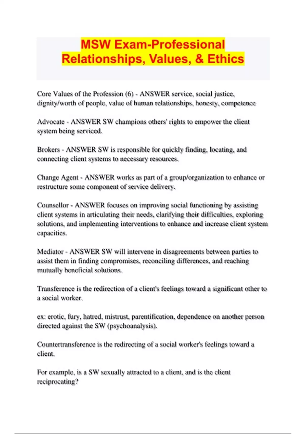 Core Values of the Profession (6) - ANSWER service, social justice,