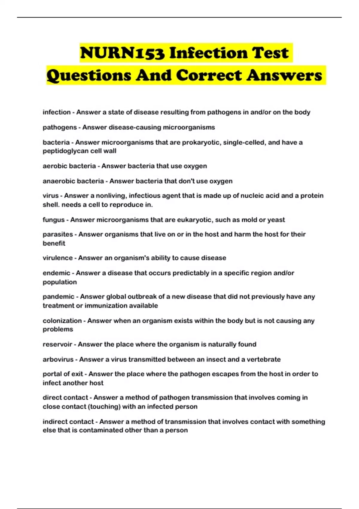 infection - Answer a state of disease resulting from pathogens in and/or on the body