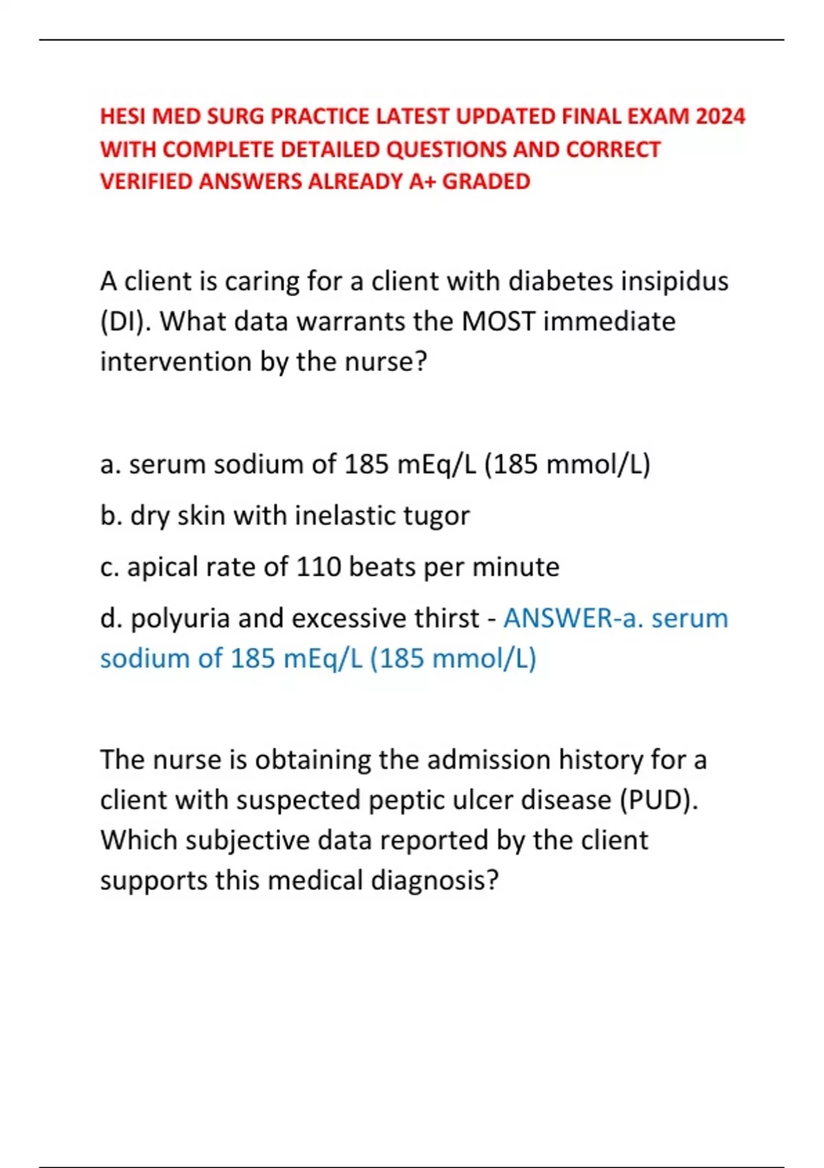 HESI MED SURG PRACTICE LATEST UPDATED FINAL EXAM 2024
