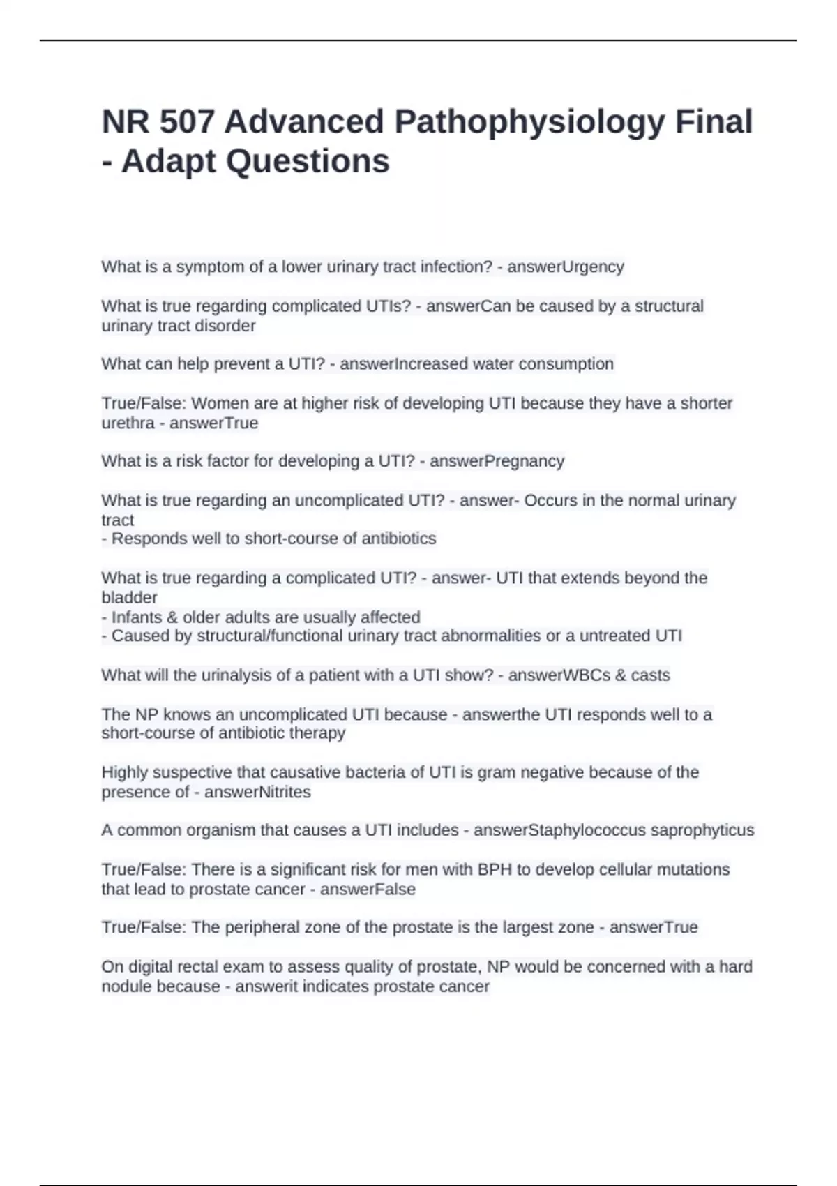 What is true regarding an uncomplicated UTI? - answer- Occurs in the normal urinary