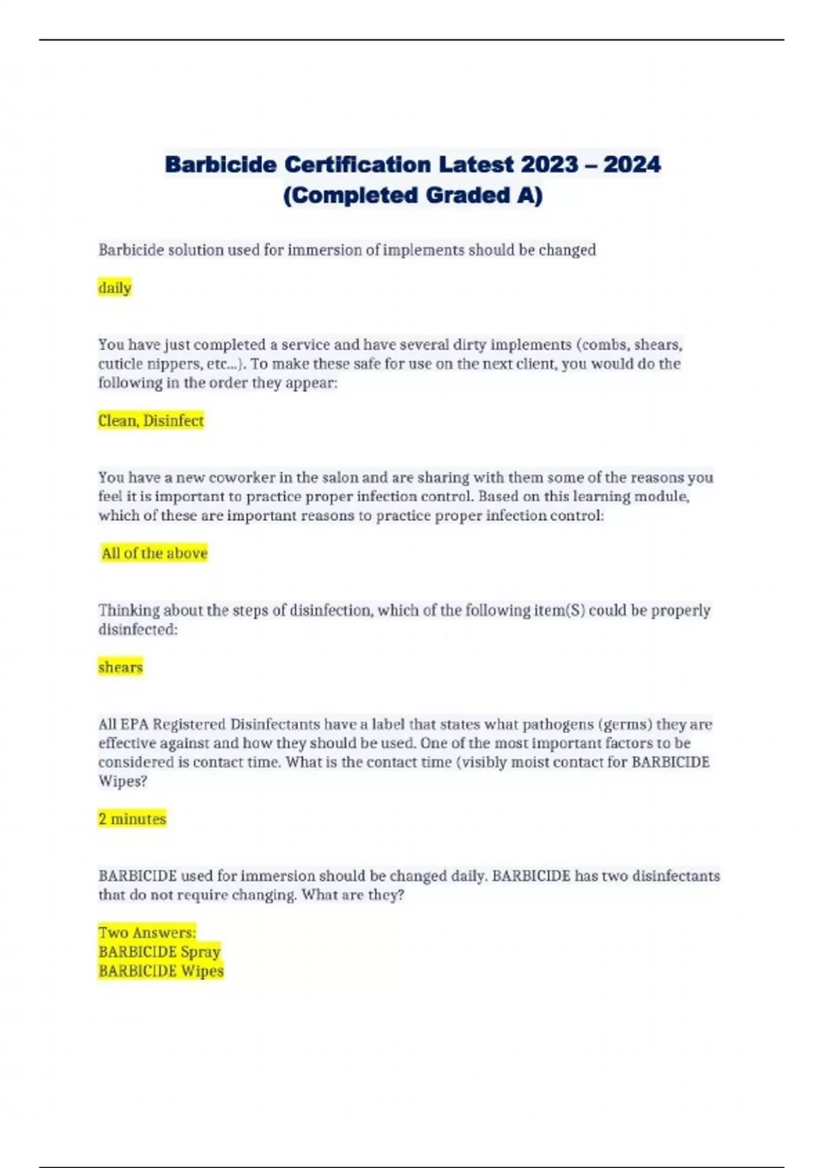 Barbicide Certification Latest (Completed Graded A)