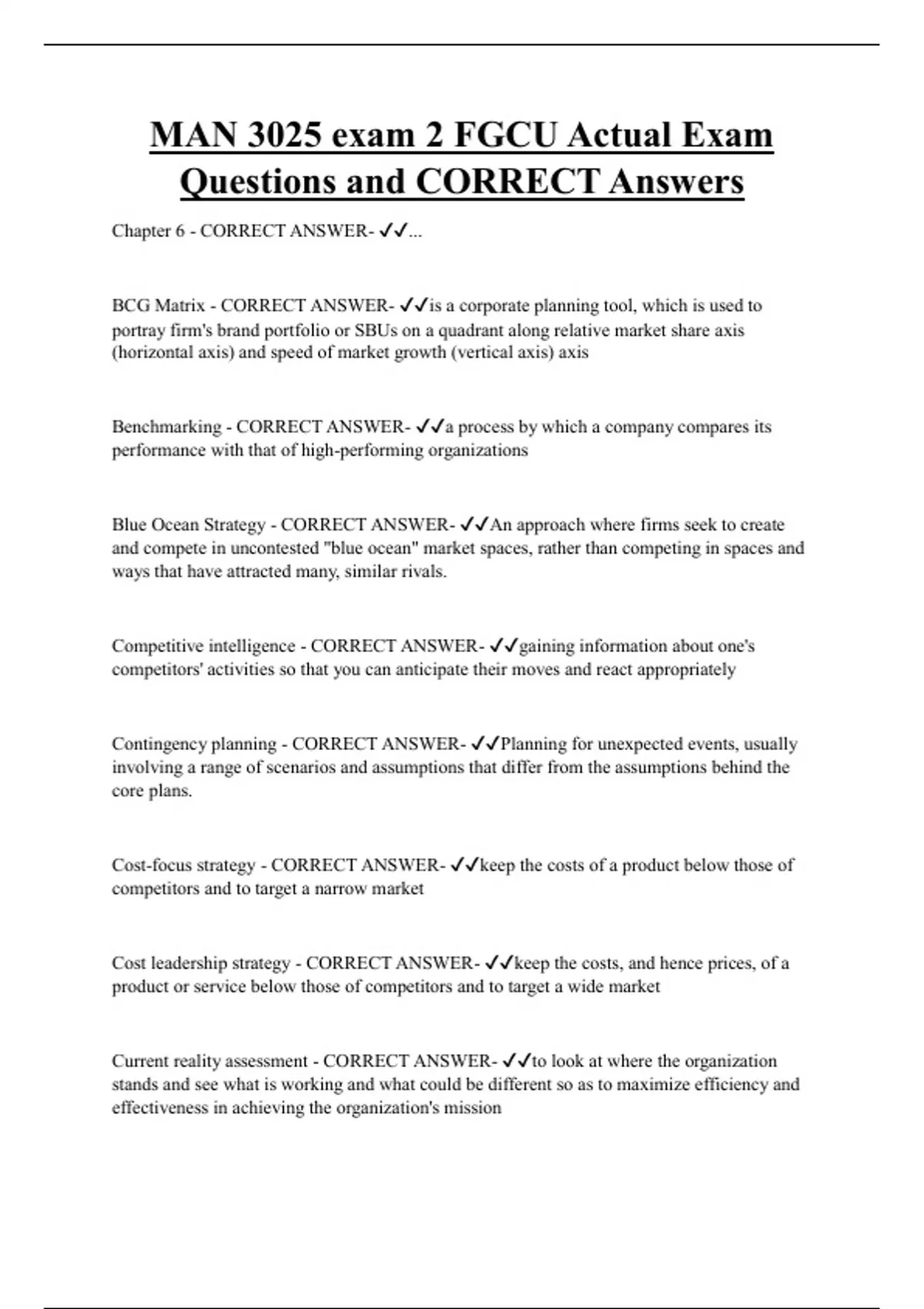 Questions and CORRECT Answers