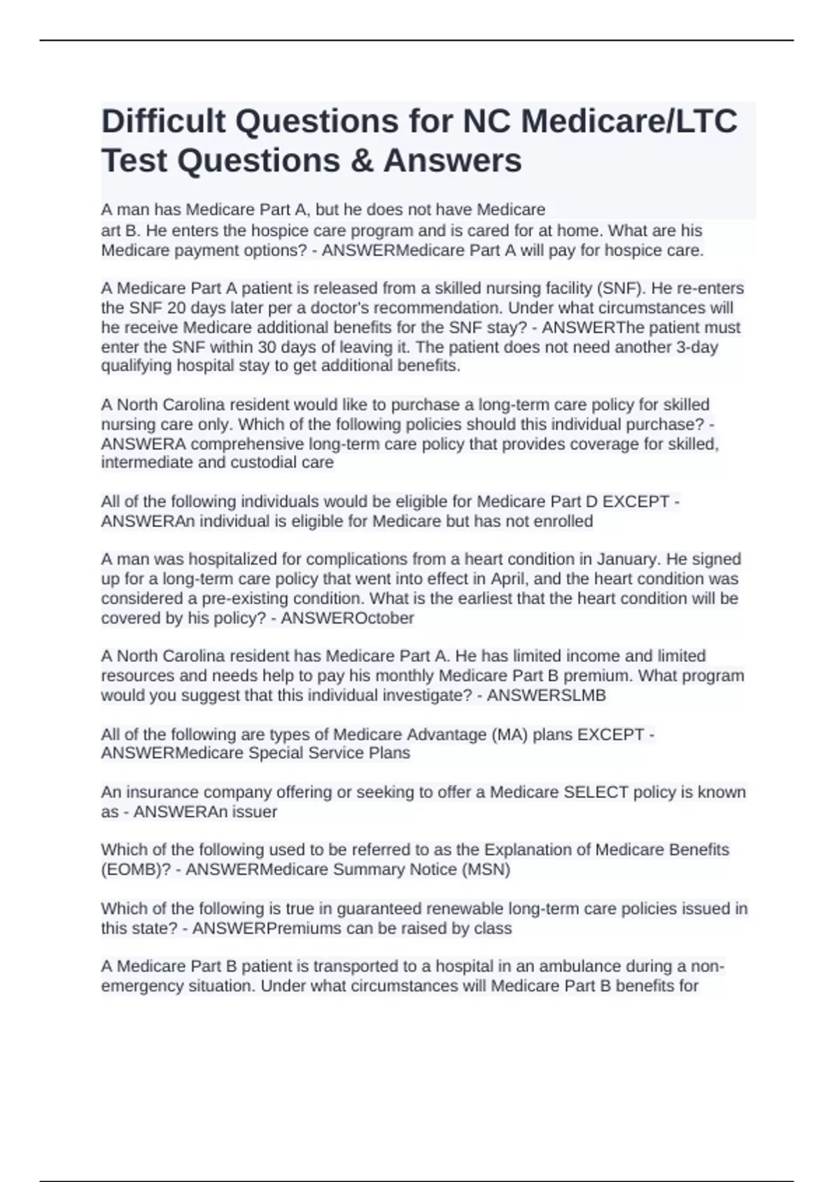 he receive Medicare additional benefits for the SNF stay? - ANSWERThe patient must