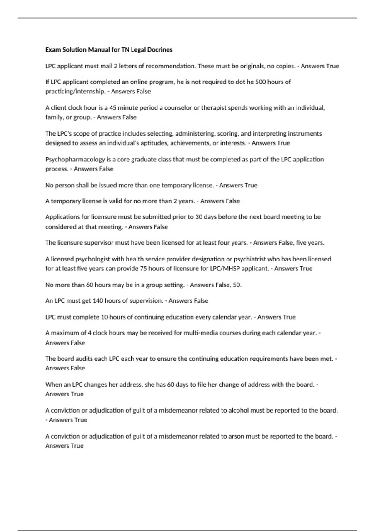 LPC must complete 10 hours of continuing education every calendar year. - Answers True